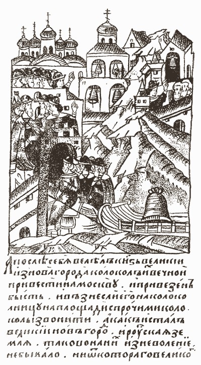 Увоз вечевого колокола. Летописная миниатюра XV века.