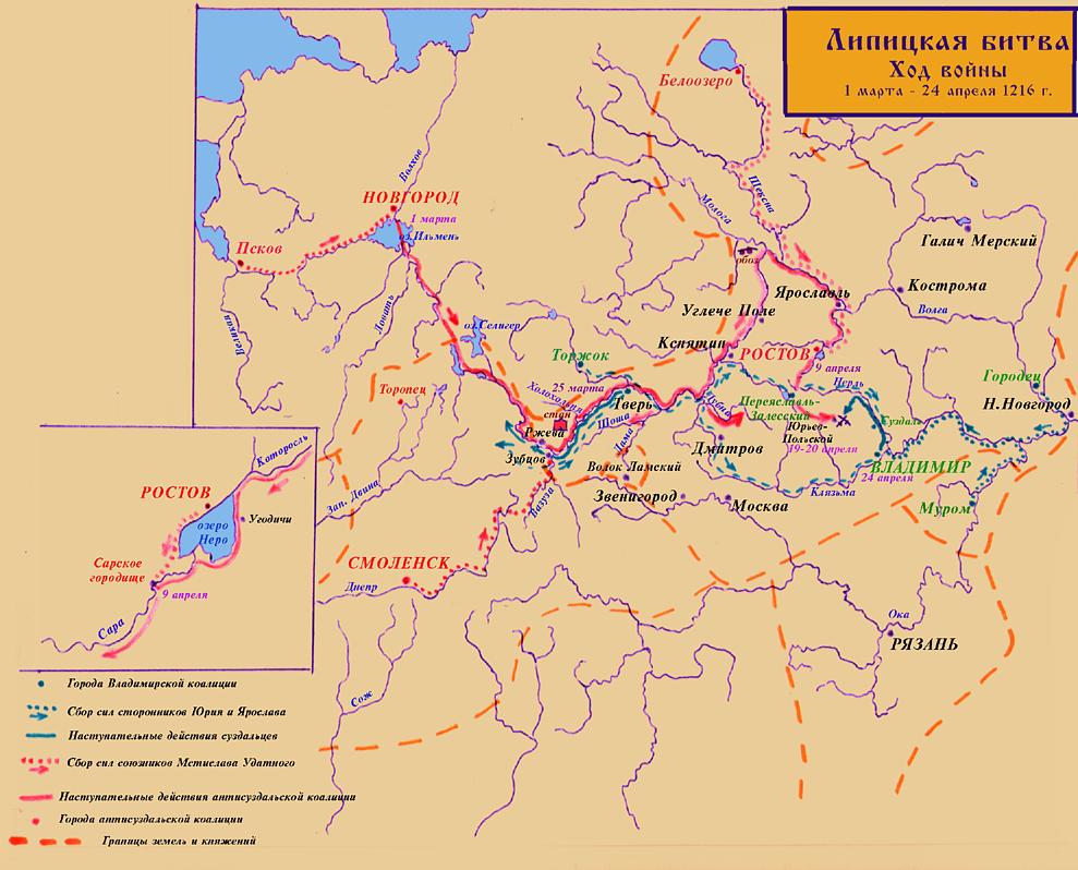 1216 год. 21 апреля состоялась битва на реке Липице близ Юрьева-Польского между войском Новгорода Великого под командой князя Мстислава Мстиславича и войском владимирско-суздальских князей.