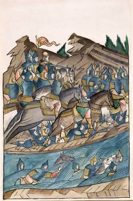 Битва на реке Воже. 1378 г. Миниатюра лицевого летописного свода. 70-е гг. XVI века