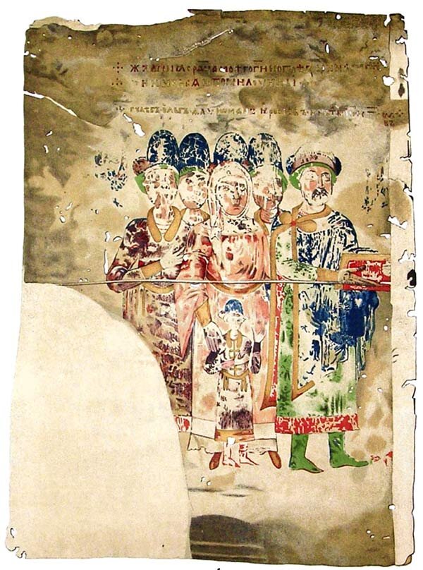Заглавный лист харатейного «Изборника» 1073 г., изображающий великого князя Святослава Ярославича и его семейство.