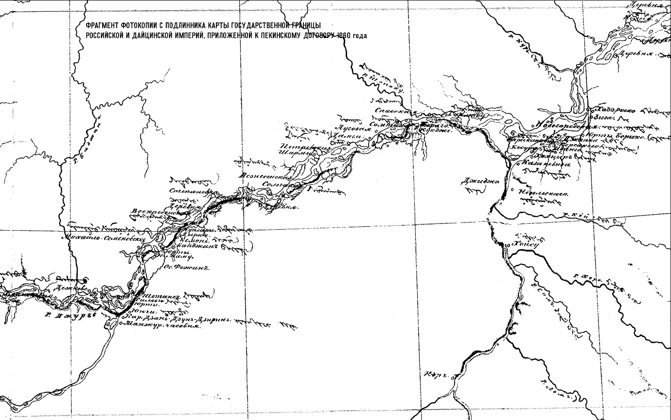Карта государственной границы Российской и Дайцинской империй, приложенная к Пекинскому договору 1860 года. Фотокопия