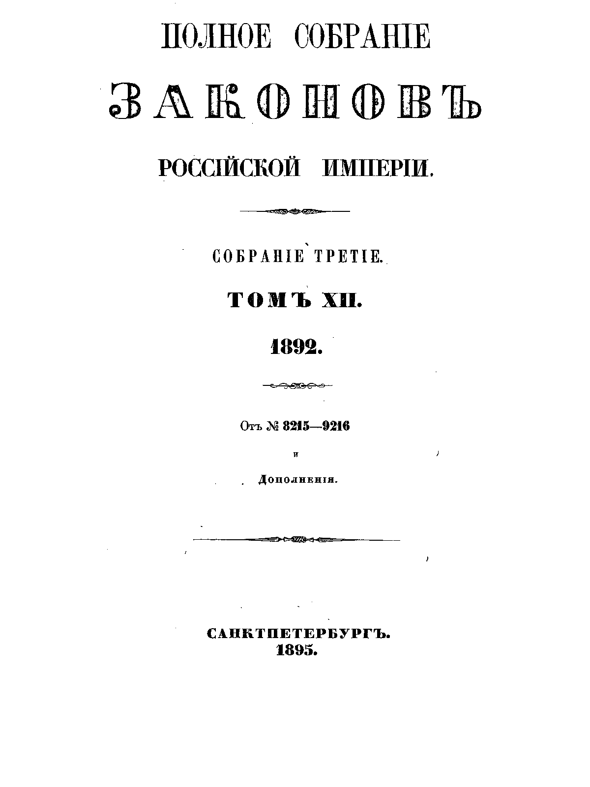 Полное собрание законов Российской Империи. Собрание Третье. Том XII