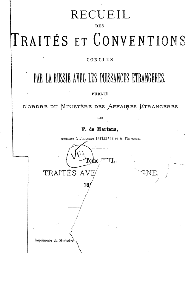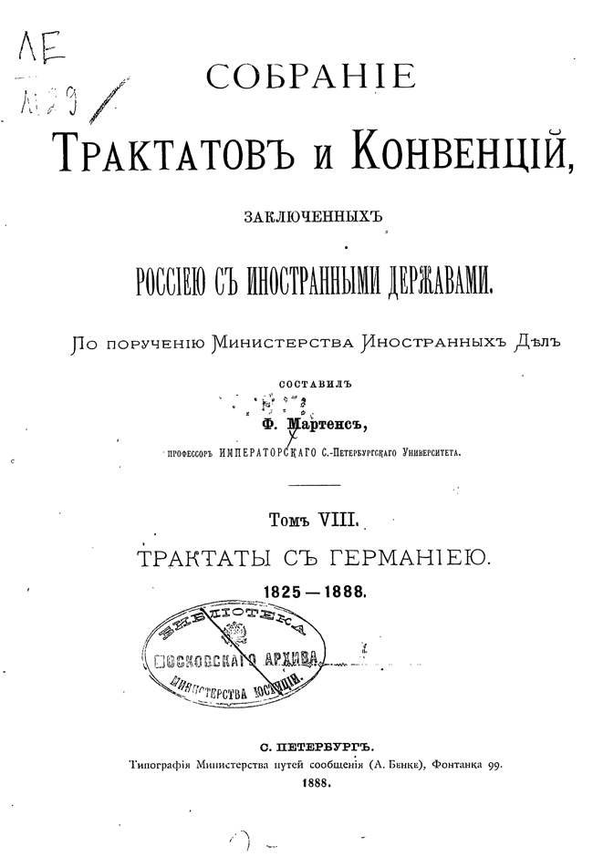 Собрание Трактатов и Конвенций, заключенных Россией с иностранными державами. Том VIII. Трактаты с Германией.