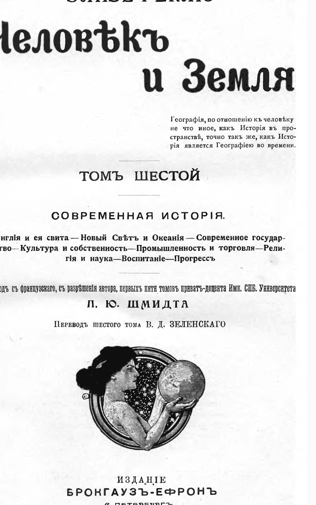 «...Мастерский свод всей литературы географии, замечательный как богатством данных и превосходных приложений — карт и рисунков, так и талантливостью изложения... «Человек и Земля» печатается одновременно на французском языке и в русском переводе».