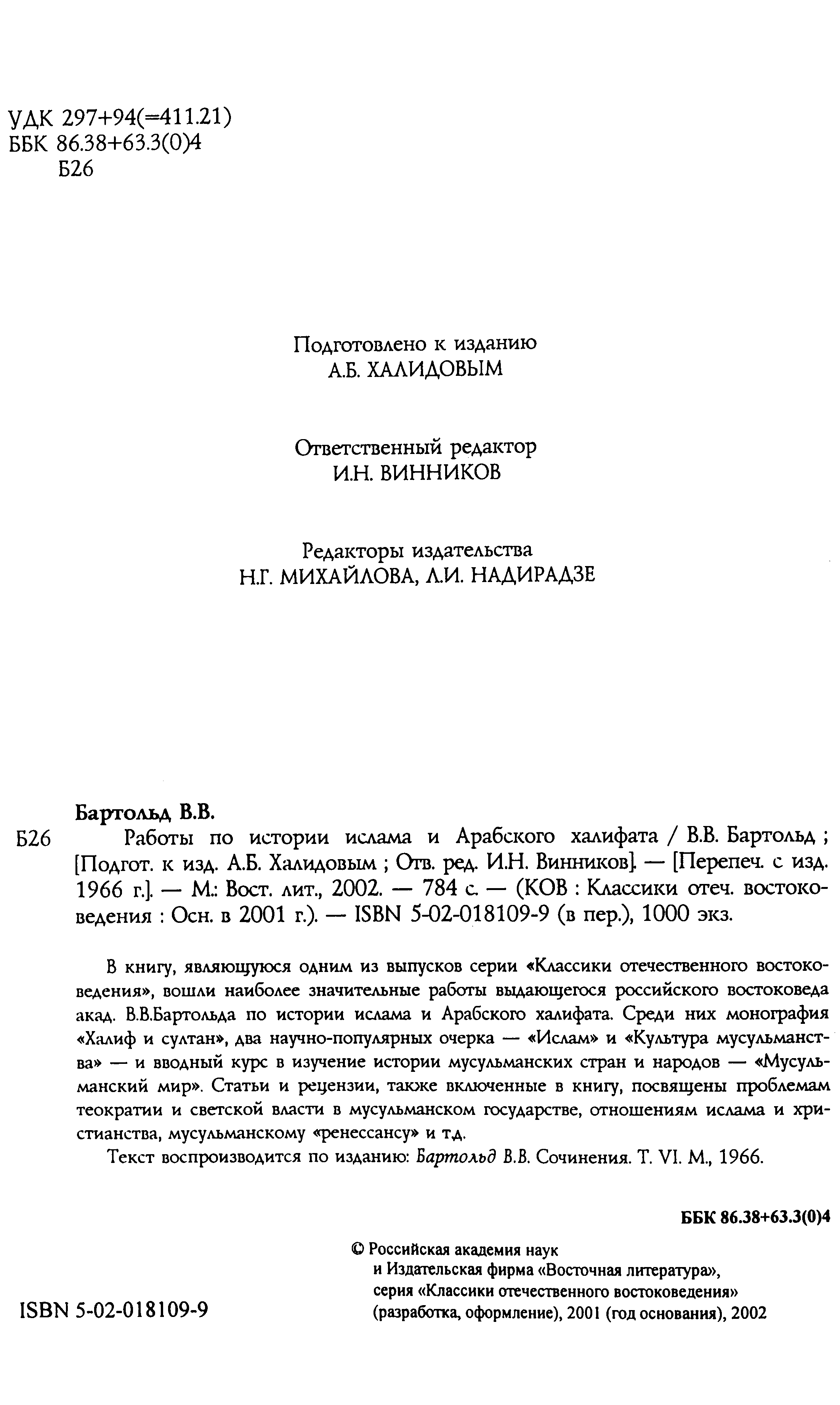 В книге, являющейся одним из выпусков серии `Классики отечественного востоковедения`, собраны основные историко-географические работы выдающегося российского востоковеда академика В.В.Бартольда. Они созданы в первые десятилетия XX в. и посвящены исторической географии Средней Азии, которой ученый уделял особое внимание на протяжении всей своей научной деятельности. Помимо двух монографий по проблемам комплексного исследования Аральского моря и орошения Туркестана в книгу вошли историко-географические статьи из `Энциклопедии ислама`, касающиеся обширной территории от Крыма и Поволжья до Монголии.