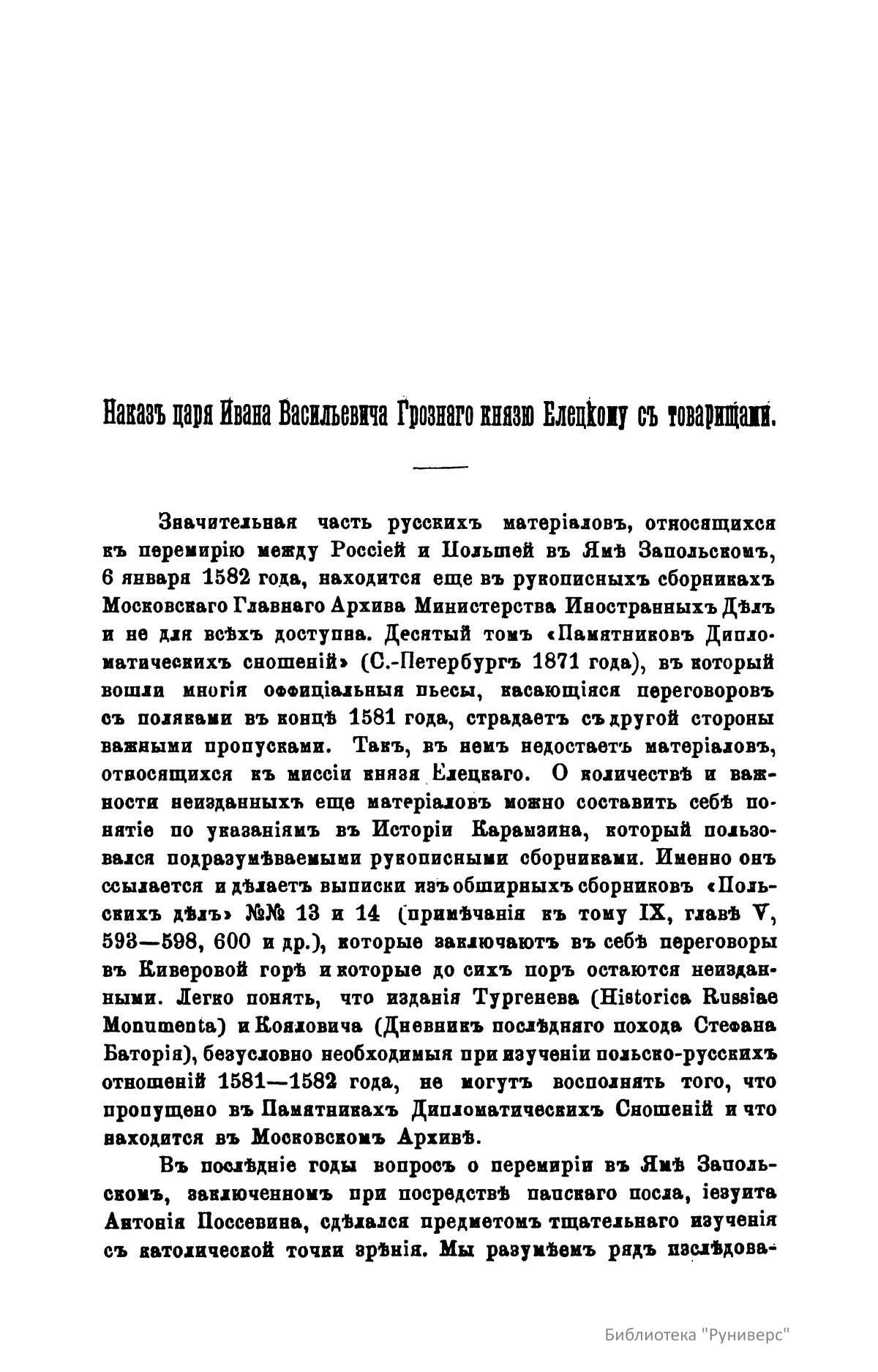 НАКАЗЪ ЦАРЯ ИВАНА ВАСИЛЬЕВИЧА ГРОЗНАГО КНЯЗЮ ЕЛѢЦКОМУ СЪ ТОВАРИЩАМИ