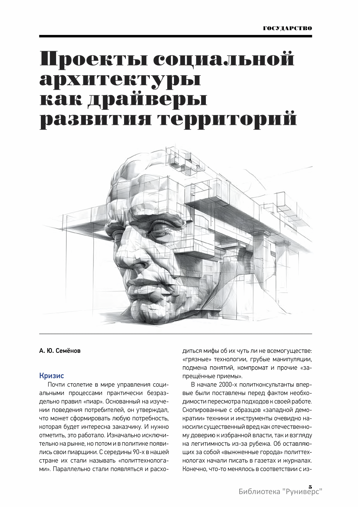 Издание представляет собой научно-популярный сборник с татей посвящён анализу ключевых вызовов, стоящих перед Россией и миром в эпоху глобальной перестройки и наступления «Эпохи Цифры», фокусируясь на вопросах цивилизационного выбора, экономической суверенности и новых подходах к управлению обществом. Материалы призваны преодолеть инерцию мышления «здесь и теперь» и предложить абстрактные, межсистемные рамки для создания долгосрочных архитектур развития.