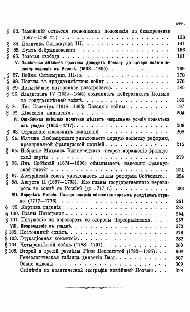 Оценивая историю как наставницу жизни, автор видит цель своего исследования в том, чтобы показать изменение основ и условий общественного и политического развития Польши в прошлом, выяснить причины этого развития и последовавшего за ним упадка, дать характеристику народа и выдающихся личностей в каждой эпохе и отделах, на которые распадается каждая эпоха. Особое внимание уделено XV и XVI векам – времени процветания Польши. Автор призывает читателя уважать прошлое, но не «превращать его в мумию, а разумно и трезво пользоваться уроками истории».