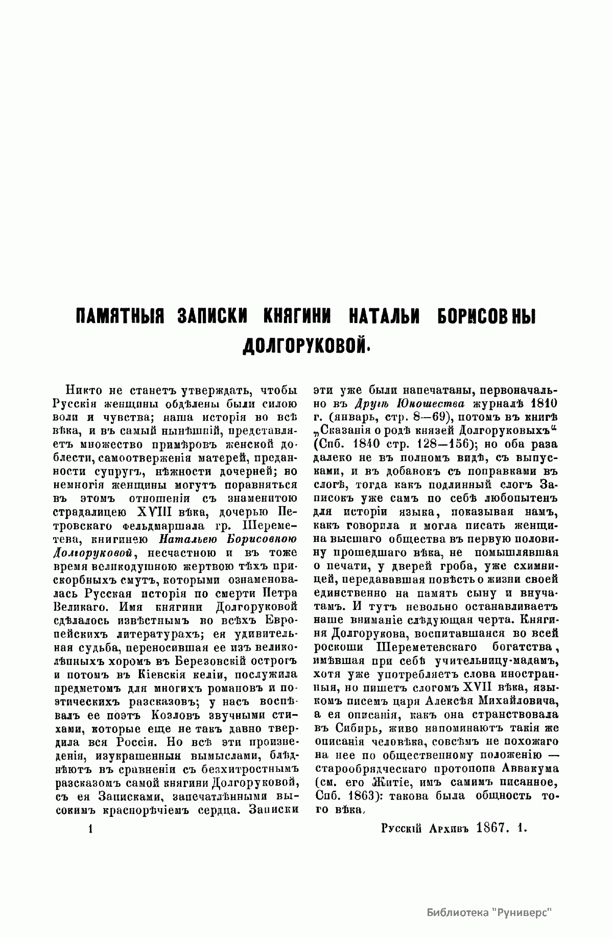 Русскiй архивъ. Историко-литературный сборникъ. 1867. Выпуски 1-6