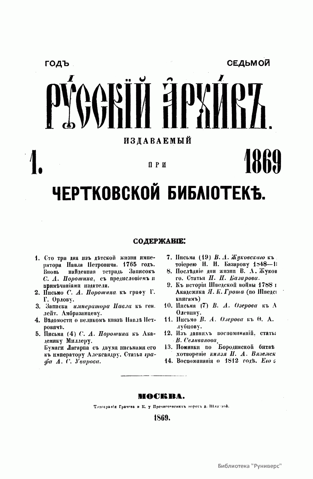 Русский архив. Историко-литературный сборник. 1869. Выпуски 1-6