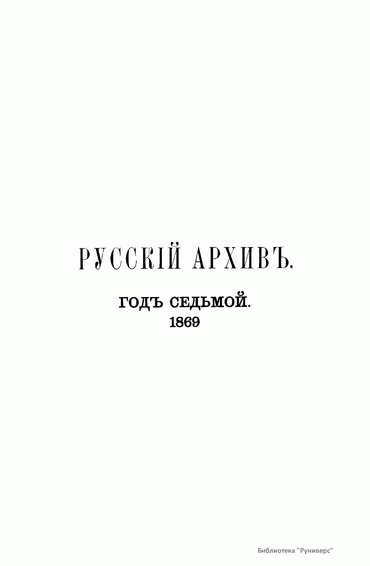 Русскiй архивъ. Историко-литературный сборникъ. 1869. Выпуски 1-6