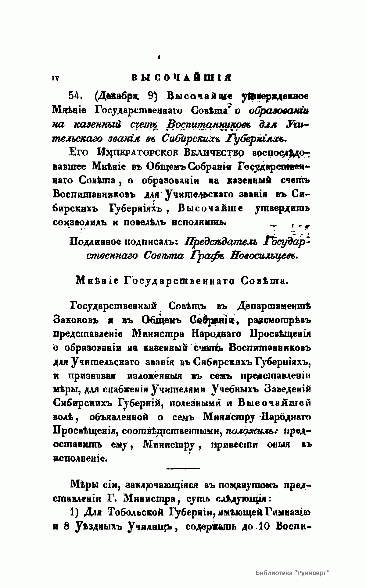 Журнал Министерства народного просвещения выходил с 1834-го по 1917 год. Официальный периодический журнал об успехах просвещения в России. Издатели журнала уверены в том, что «если для каждого человека необходим выход из грубой тьмы невежества и беспрерывное дальнейшее движение к свету, то для народов необходимо попечительное участие правительства в образовании. Только правительство имеет все средства знать и высоту успехов всемирного образования, и настоящие нужды Отечества».