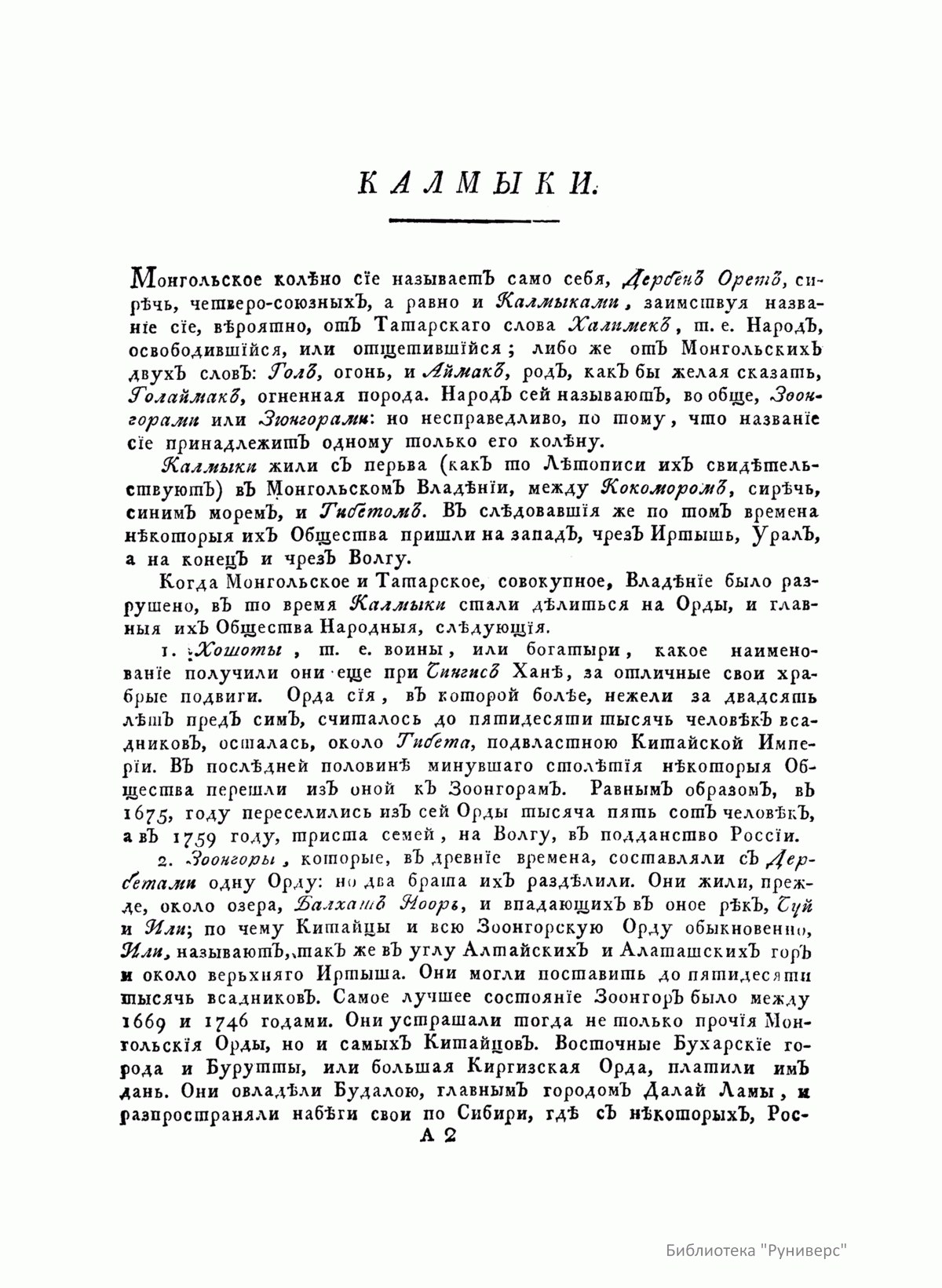 Описанiе всѣхъ обитающихъ въ Россiйскомъ государствѣ народовъ. Ихъ житейскихъ обрядовъ, обыкновенiй, одеждъ, жилищъ, упражненiй, забавъ, вѣроисповѣданiй и другихъ достопамятностей. Часть четвертая о народахъ монгольскихъ, объ армянахъ, грузинахъ, индiйцахъ, немцахъ, полякахъ и о владычествующихъ россiанахъ, съ описанiемъ всѣхъ именованiй козаковъ, такъ же Исторiя о Малой Россiи и купно о Курландiи и Литвѣ