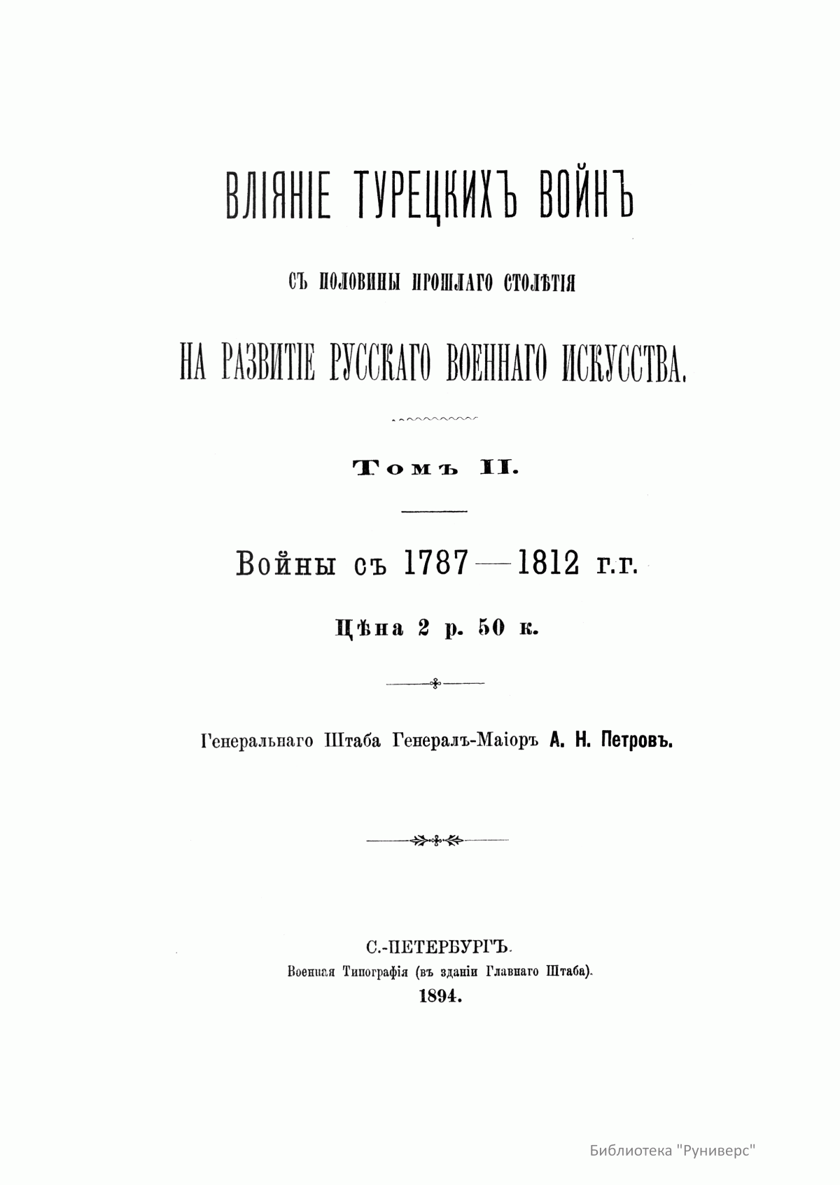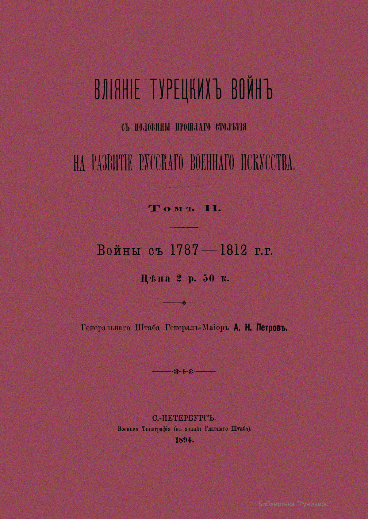 Влiянiе турецкихъ войнъ съ половины прошлаго столѣтiя на развитiе русскаго военнаго искусства. Том II