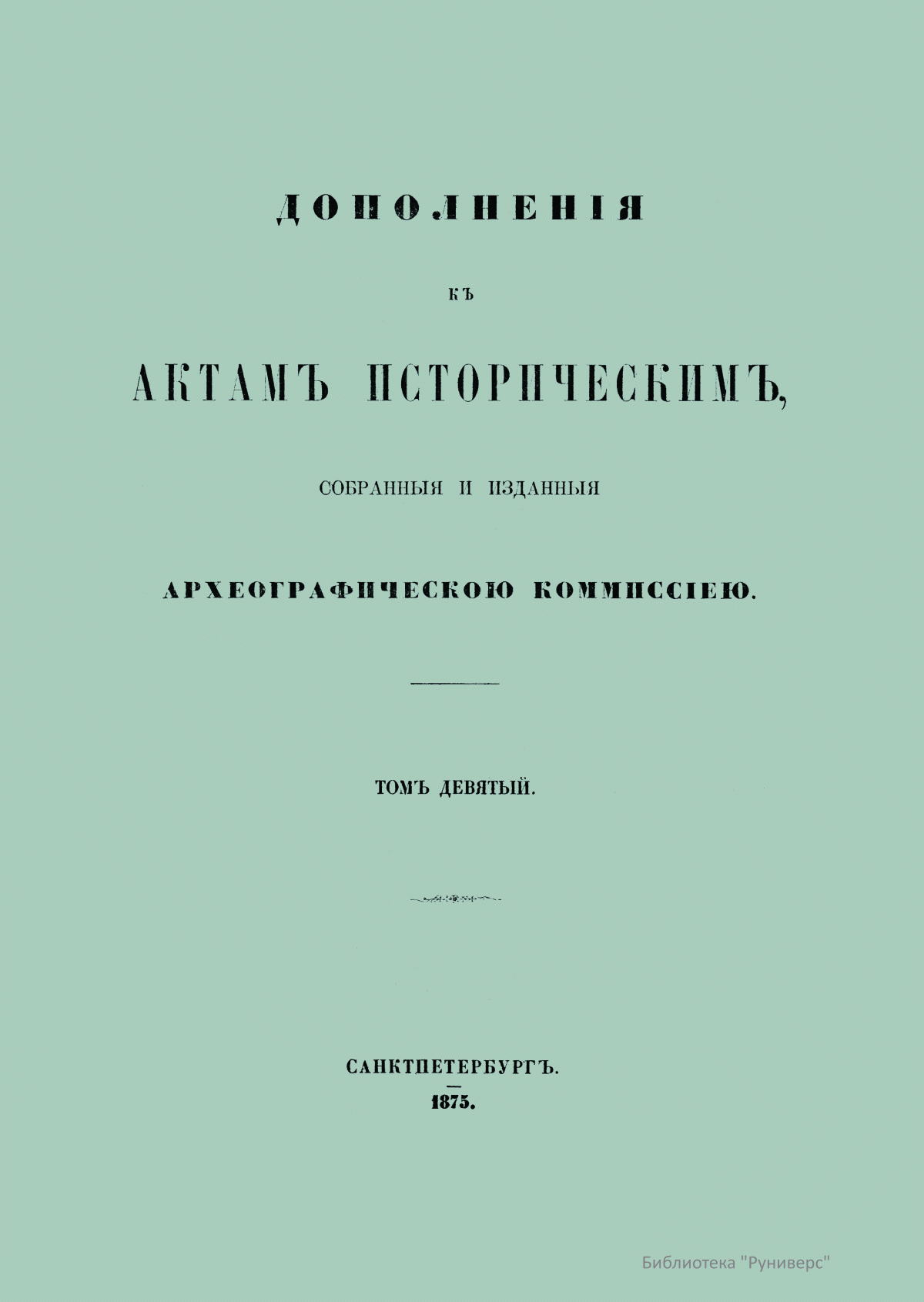 Дополненiя къ актамъ историческимъ, собранныя и изданныя археографическою коммиссiею. Томъ девятый