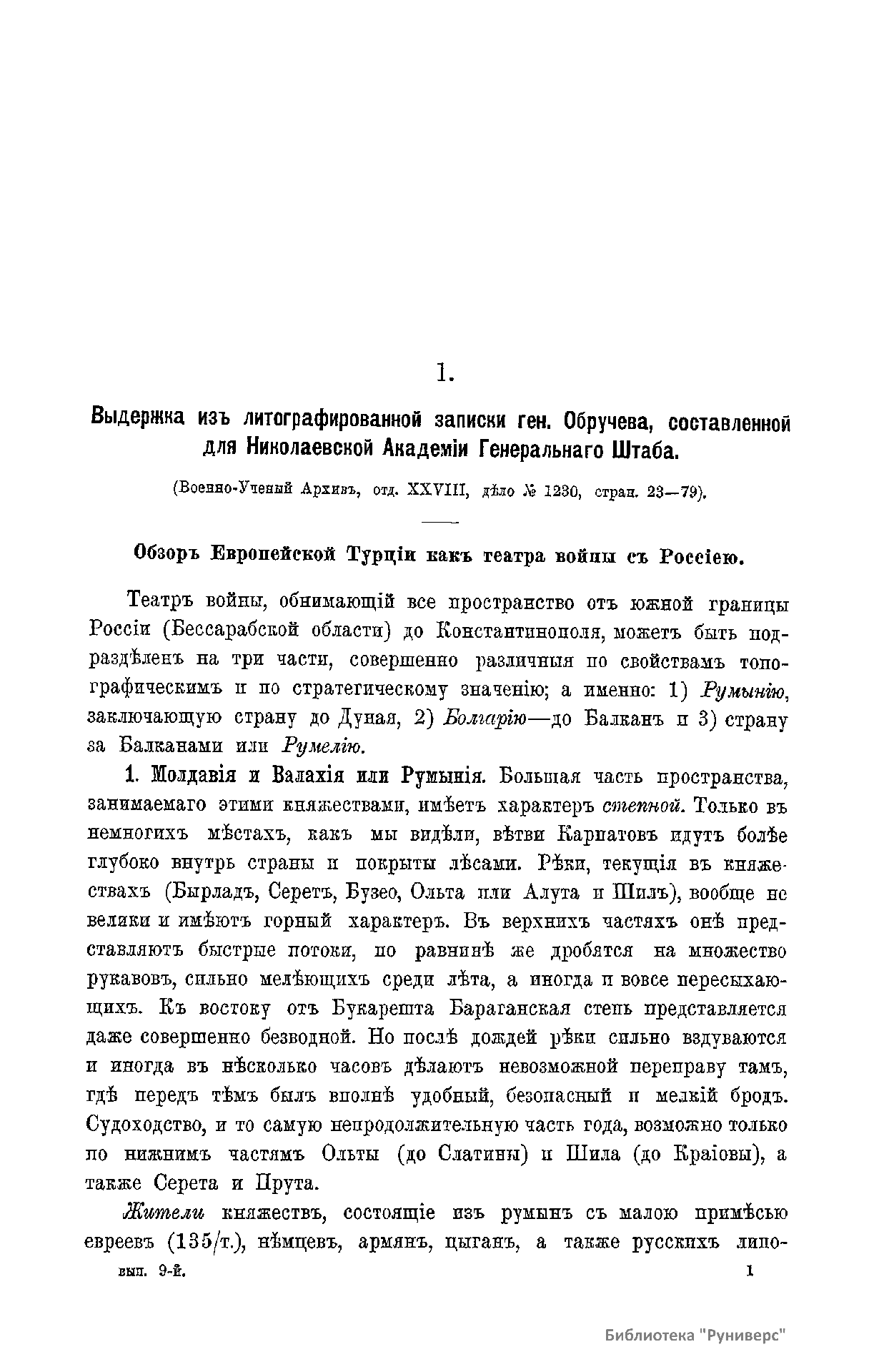 Сборникъ матерiаловъ по русско-турецкой войнѣ 1877-1878 г.г. на Балканскомъ полуостровѣ. Выпускъ 9. Свѣдѣнія о театрѣ войны