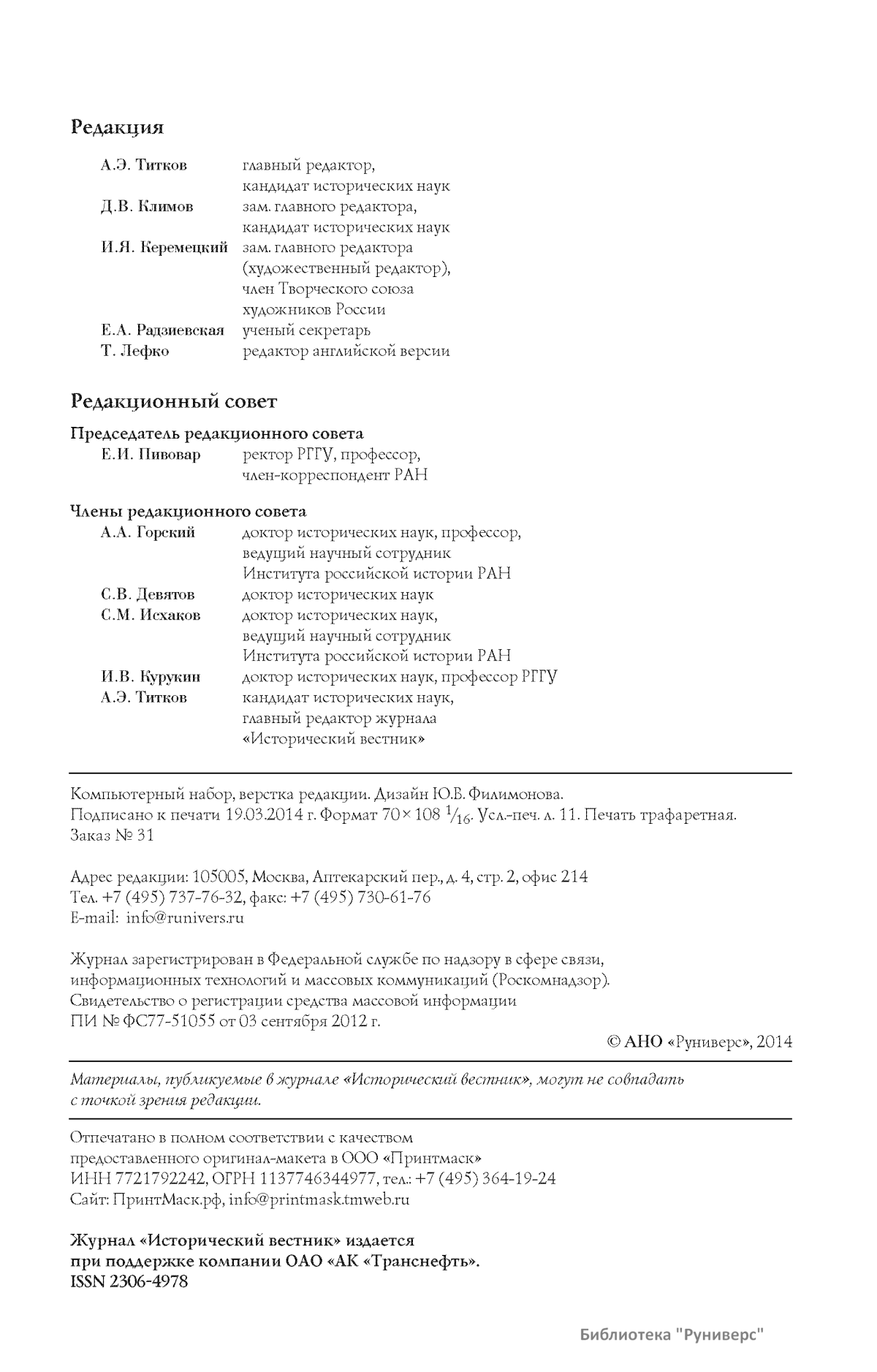 XIII–XVI столетия принципиально изменили карту Восточной Европы. Появление на ее просторах улуса Монгольской империи — Золотой Орды запустило процесс выдвижения новых политических центров. Одним из них стала Москва, но рядом с ней выросла другая Русь — Великое княжество Литовское и Русское, большая часть населения которого называлась «русскими» или «русинами» — но не считала себя «московитами». В средневековой Европе Литва сочетала воинственную центральную власть князей Гедиминовичей с широкими автономными правами отдельных земель и получила уникальный опыт конфессиональной и национальной терпимости. В номере собраны работы исследователей, с разных сторон изучав-ших своеобразие литовской модели государственности и факторы, способствовавшие дивергенции систем общественно-политического устройства двух крупнейших государств Восточной Европы — Великого княжества Литовского и Московского царства. Редакция «Исторического вестника» предоставила возможность высказать свои позиции не только российским историкам, но и их коллегам с Украины, Белоруссии, Литвы и Польши — тех стран, которые считают себя преемниками средневековой державы Гедиминовичей. А. Дубонис (Литва) показал, как грабительские походы литовских дружин превратились в завоевание соседних земель, и выделил две различные модели литовской экспансии — военную и мирную. Статья С.В. Полехова (Россия) посвящена восстанию в Смоленске в 1440 г. в контексте в целом успешного процесса интеграции Смоленщины: к началу XVI в. смоленские бояре, мещане и даже «черные люди» прочно ассоциировали себя с Великим княжеством Литовским. Е.В. Русина (Украина) попыталась оценить, как отвечает современная историография на вопрос: почему на руинах Древнерусской державы одновременно возникли столь непохожие друг на друга великие княжества Московское и Литовское, имевшие разную логику исторического развития? Д. Шульц и Р. Яворский (Польша) представили обзор трудов польских историков, посвященных ключевым в польско-литовских отношениях событиям — Кревскому акту 1385 г. и Люблинской унии 1569 г. А.И. Груша (Белоруссия) постарался обобщить сведения и выявить специфику (децентрализацию и подвижность) различных видов архивов Великого княжества Литовского, рассеянных ныне по архивохранилищам нескольких государств. А.В. Казаков (Белоруссия) проследил судьбу московского выходца XVI века И.Т. Юрлова, чей жизненный путь можно считать примером успешной интеграции эмигранта в социум Великого княжества Литовского в условиях благоприятного для москвичей «социокультурного климата» этого государства. В.А. Воронин (Белоруссия) оценил, как развивались отношения между католиками и православными в Великом княжестве в конце XIV — середине XVI в., и показал, что католической элите не удалось добиться абсолютного превосходства. До серьезных конфликтов на религиозной почве дело не доходило — в обществе были выработаны эффективные механизмы разрешения возникавших на конфессиональной почве противоречий. Д. Шульц (Польша) изучил влияние московско-литовских войн на процесс объединения Великого княжества с королевством Польским. Завершает номер рецензия С.В. Полехова на последнее издание документов Городельской унии Литвы и Польши 1413 г., посвящённая оценке реальных мер, направленных на интеграцию восточ