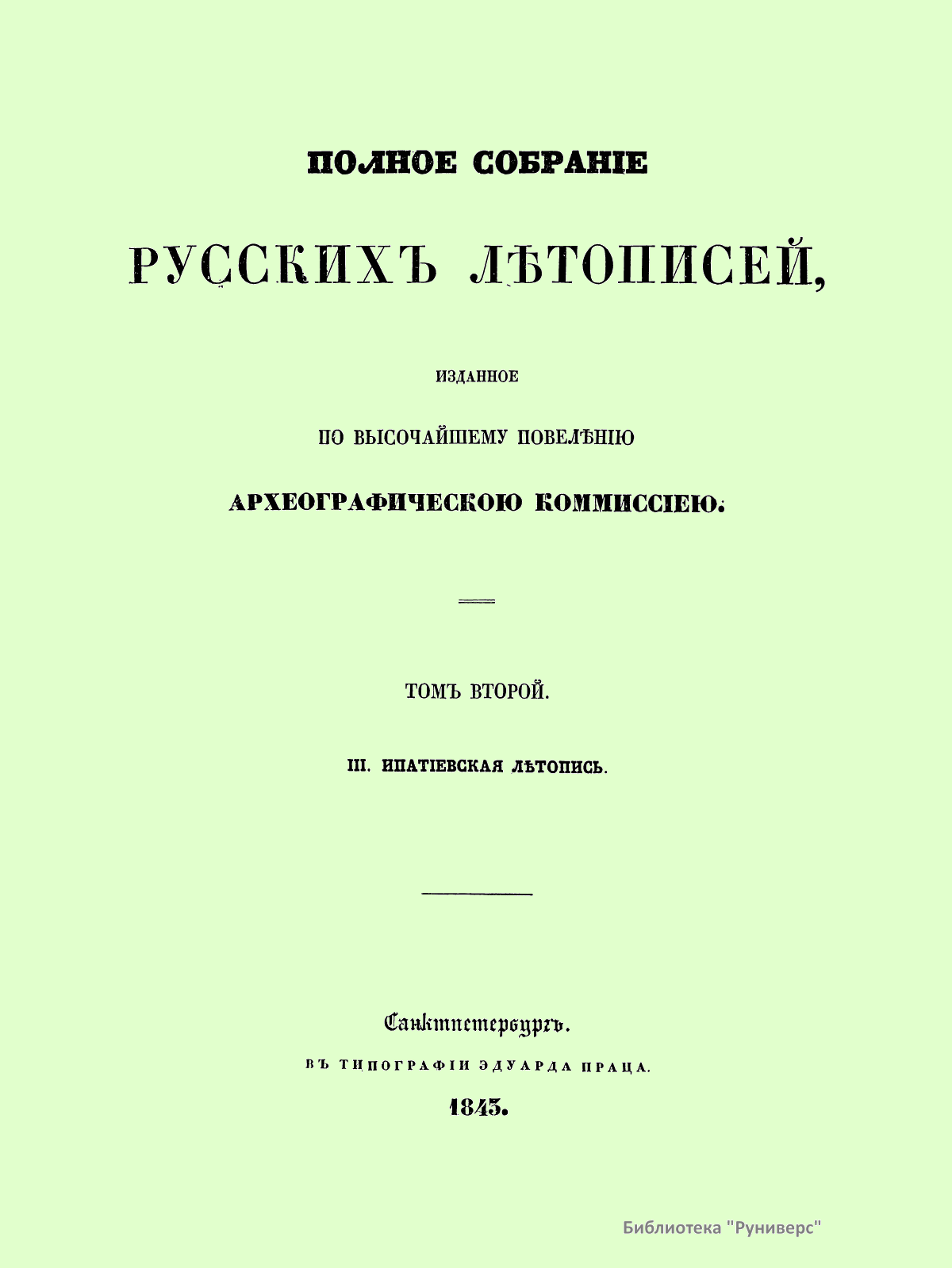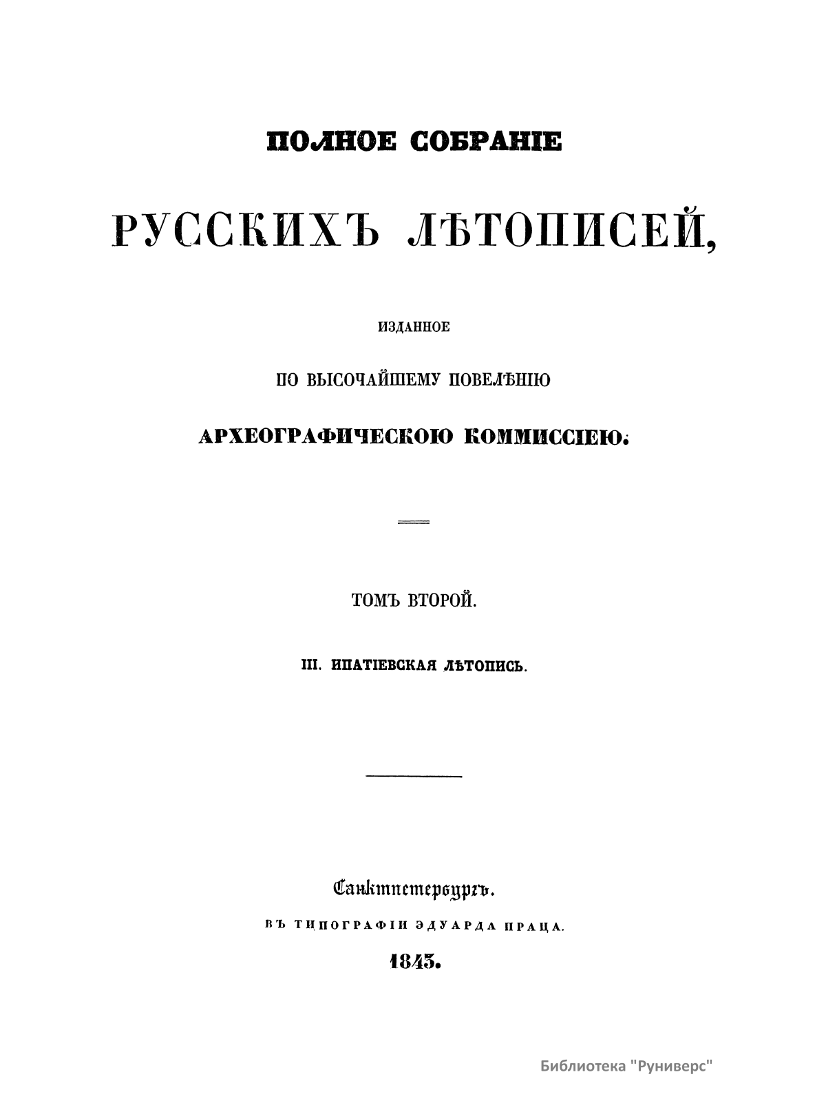 Полное собранiе русскихъ лѣтописей. Томъ второй. III. Ипатiевская лѣтопись