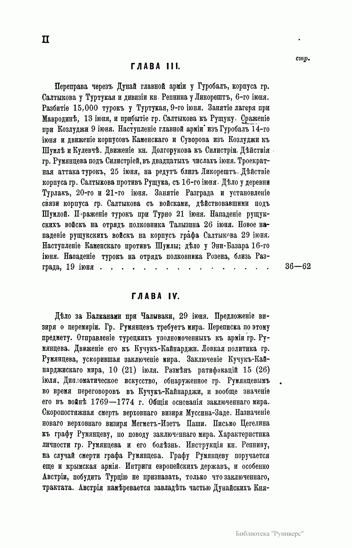 Предпринимая описание первой турецкой войны, в царствование Екатерины II, автор старался изложить военные и политические события того времени с возможною полнотой, насколько это позволяли известные ему рукописные материалы архивов, генерального штаба, государственного и министерства иностранных дел. Петрову посчасливилось одним из первых разбирать дела управления графа Румянцева, только переданные в архив генштаба.