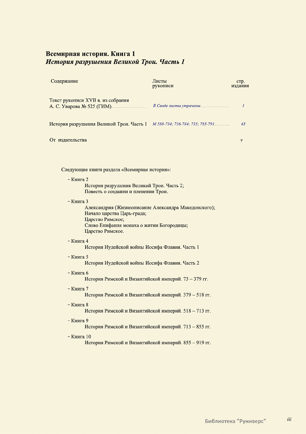 Лицевой летописный свод. XVI века — монументальный памятник древнерусского книжного искусства. На 10 тысячах листов с более чем 17 тысячами красочных миниатюр — «окон в историю» — представлена самая ранняя историческая и литературная энциклопедия. Лицевой свод дошел до наших дней в 10 томах, находящихся в разных древлехранилищах: БАН к РНБ в Санкт-Петербурге и ГИМ в Москве. Фирма «АКТЕОН» совместно с хранителями впервые осуществила научное факсимильное издание «Лицевой летописный свод XVI века». Предлагаемое издание с переводом — как дополнение в рамках научного аппарата вышеназванного факсимиле - представлено тремя разделами: библейская история, всемирная история, русская летописная история. В настоящем издании листы расположены в хронологическом порядке повествования На внешнем поле размещены транслитерация и перевод на современный русский язык. Русская летописная история 1114—1567 гг. — отражена на 6010 Лицевого летописного свода XVI века в следующих его томах: Г — Голицынский том (Отдел рукописей Российский национальной библиотеки, F.IV.225), Л — Лаптевский TOM (Отдел рукописей Российской национальной библиотеки, F.IV.233), O-I — Остермановский первый том (Отдел рукописей Библиотеки Академии наук, 31. 7. 30-1), O-II — Остермановский второй той (Отдел рукописей Библиотеки Академии наук, 31, 7. 30-2), Ш — Шумиловский том (Отдел рукописей Российской национальной библиотеки, F, IY. 232), С — Синодальный том (Отдел рукописей Государственного Исторического музея. Син. № 962), Ц— Царственная книга (Отдел рукописей Государственного Историческою музея. Син. № 149). В сносках отряжены разночтения с перепей ПСРЛ — Полным собранием русских летописей - фундаментальной для изучения истории древней и средневековой Руси книжной серией (её тексты, в основном, издавались наборно, в орфографии XIX века).