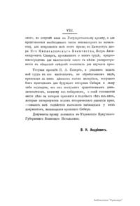 » с тем, чтобы продолжать эту работу впредь. После этого изменил название четвертого и пятого тома, которые стали соответственно первой и второй частью сочинения «Сибирь в царствование императрицы Екатерины II». Данное исследование, представляющее собой собрание материалов по истории Сибири (главным образом это выписки из «Полного собрания законов», а также выборка документов из сенатского архива), в свое время стало видным явлением в историографии Сибири и не утратило своего исторического значения до сих пор.