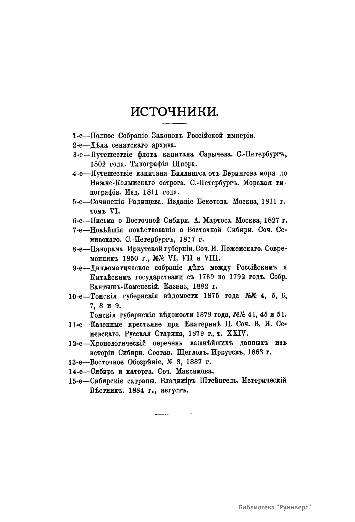 » с тем, чтобы продолжать эту работу впредь. После этого изменил название четвертого и пятого тома, которые стали соответственно первой и второй частью сочинения «Сибирь в царствование императрицы Екатерины II». Данное исследование, представляющее собой собрание материалов по истории Сибири (главным образом это выписки из «Полного собрания законов», а также выборка документов из сенатского архива), в свое время стало видным явлением в историографии Сибири и не утратило своего исторического значения до сих пор.