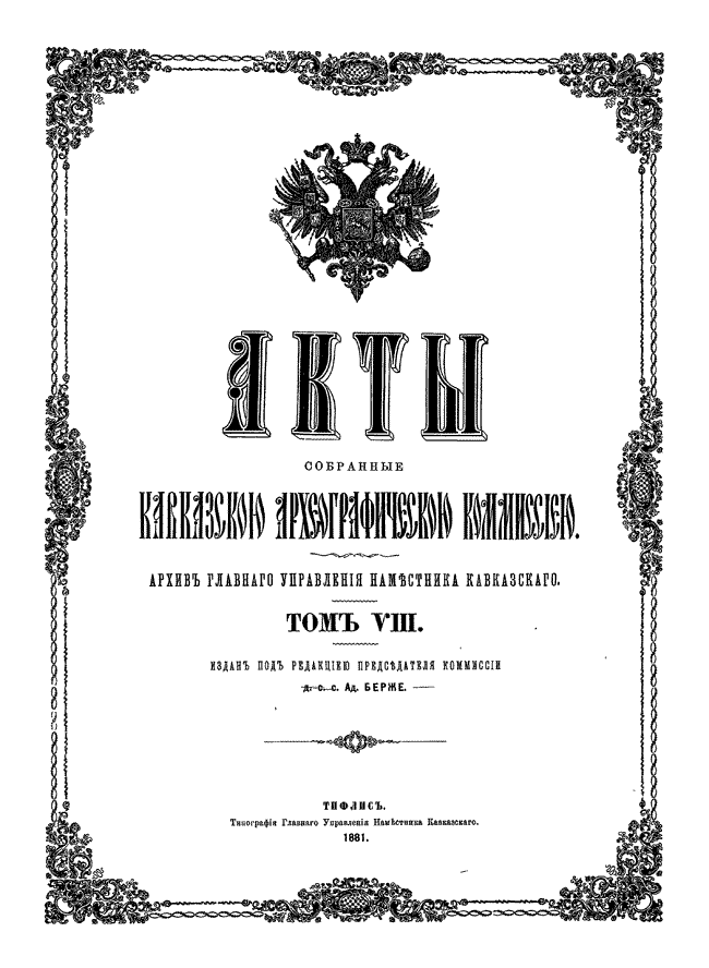 Акты, собранные Кавказской археографической комиссией. Том VIII.