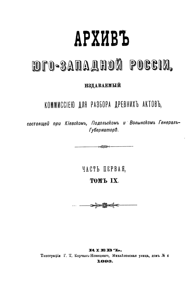 Архив Юго-Западной России. Часть 1. Том IX.