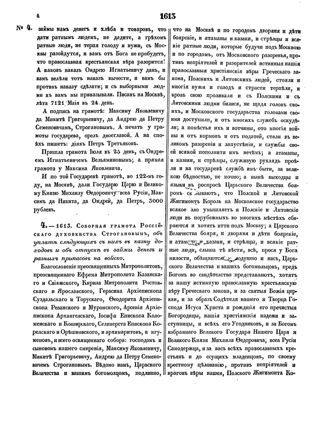 Историко-юридические акты (древние грамоты, указы, наказные памяти, отписки, судные дела, розыски и проч.) конца XIII – XVIII в., собранные экспедицией Императорской академии наук 1829 – 1834 гг. под руководством археолога Г. Строева в архивах монастырей и городов Северовосточной и Средней России, дополнены некоторыми неизвестными ранее документами из Санкт-Петербургских библиотек и Московского главного архива Министерства иностранных дел. Всего опубликовано 1296 актов.