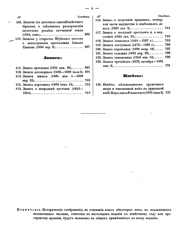 Это издание дополняет «Юридические акты» 1838 года некоторыми новыми формами старинных деловых бумаг – грамот, указов и отписок. Эти документы не имеют значения актов собственно исторических и касаются в основном частных дел, но их многочисленность и чрезвычайное разнообразие свидетельствуют о том, насколько важными они были в системе администрации Древней Руси. Кроме того, публикация актов, которые в свое время назывались «делами», даёт возможность наглядным образом изучать не только порядок старинного делопроизводства, но также личные убеждения и понятия о праве разных правительственных органов, их юридические приёмы и способ применения к делу современных требований законодательства и практики.