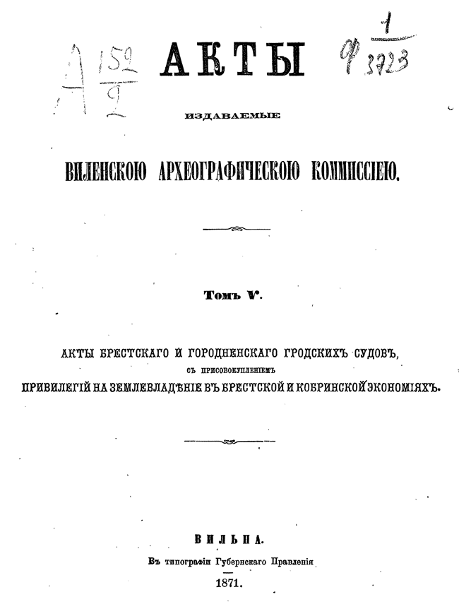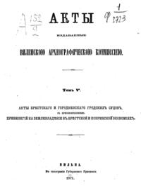 Обилие актов и документов Виленского центрального архива (19244 актовых книг) и желание исследовать прошлое Литвы, которая и в старину принадлежала России, вызвали после 1863 года учреждение особой комиссии для разбора в городе Вильне древних актов.