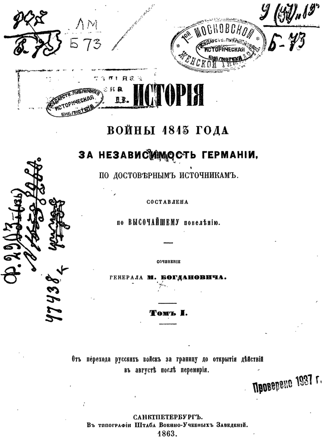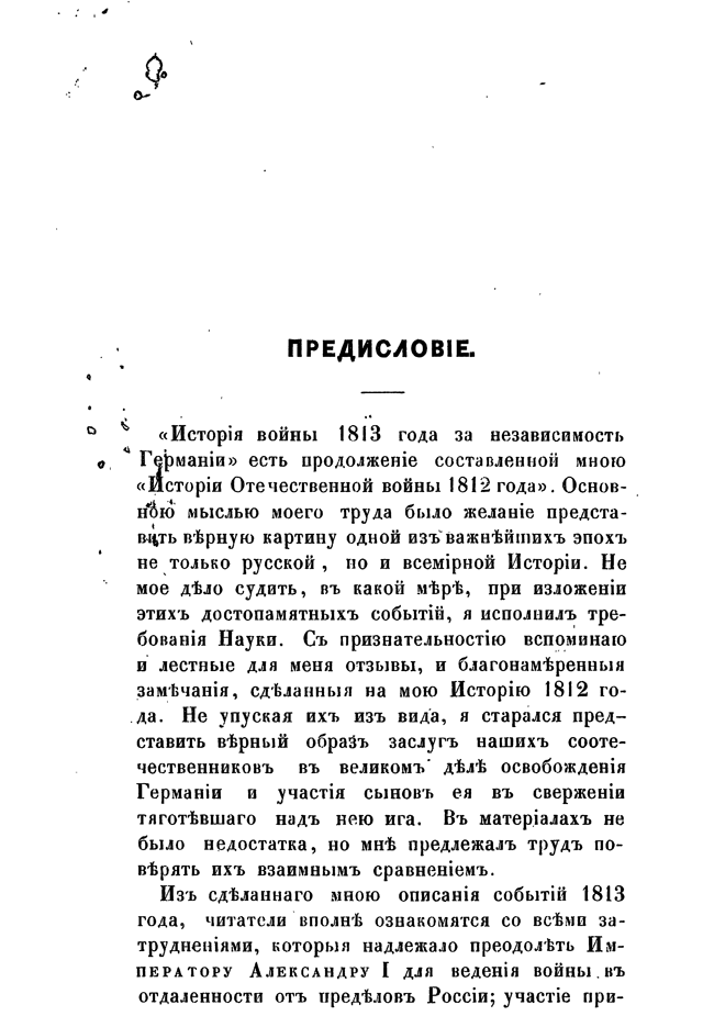 «История войны 1813 года за независимость Германии» продолжает «Историю Отечественной войны 1812 года». Подробно описывая события 1813 года, в которых участвовали почти все страны Европы, автор стремится дать верную картину одной из важнейших эпох не только русской, но и всемирной истории и отдает дань заслугам Русской армии в деле освобождения Германии. Россия в одиночку, безусловно, не смогла бы одолеть Наполеона. Но история должна признать, что русский монарх, начав войну в Германии без содействия союзников, сумел привлечь и доверие правителей, и преданность народов.