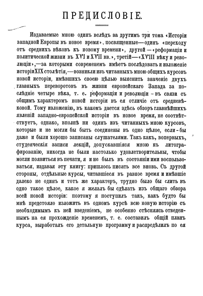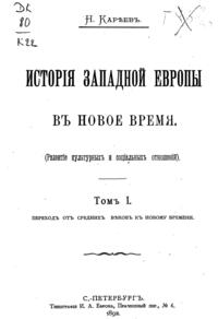 Первые тома вышли в начале девяностых годов 19 века и, посвященные- один «переходу от средних веков к новому времени», другой — «реформации и политической жизни в XVI и XVII вв.», третий — «XVIII веку и революции», — возникли из читанных им общих курсов новой истории, имевших своей целью выяснить значение двух главных переворотов в жизни европейского Запада за последние четыре века, т.е., реформации и революции — в связи с общим характером новой истории с её отличием от средневековой. Однако, позднее, Кареев решился раздвинуть границы первых задач и довести повествание до современнго ему положения дел.