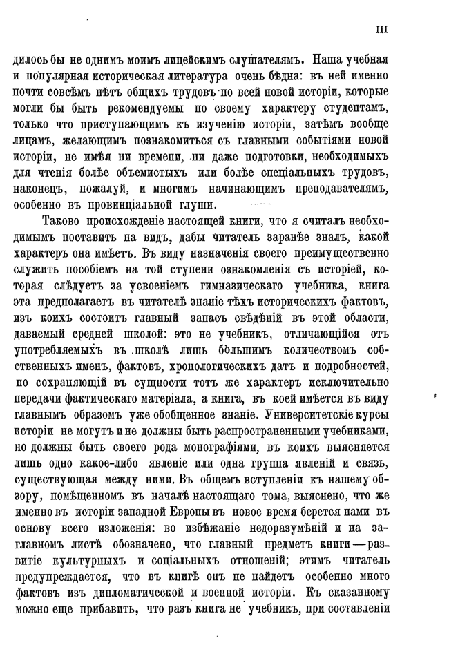 Кареев предназначал свою книгу в качестве пособия на той степени ознакомления с историей, которое следует за усвоением типового учебника, и предполагал её для читателя, уже сведующего в исторических фактах.