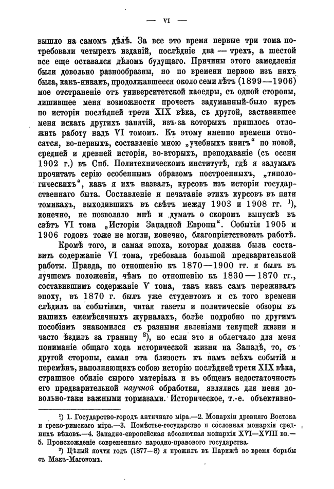 Первые тома вышли в начале девяностых годов 19 века и, посвященные- один «переходу от средних веков к новому времени», другой — «реформации и политической жизни в XVI и XVII вв.», третий — «XVIII веку и революции», — возникли из читанных им общих курсов новой истории, имевших своей целью выяснить значение двух главных переворотов в жизни европейского Запада за последние четыре века, т.е., реформации и революции — в связи с общим характером новой истории с её отличием от средневековой. Однако, позднее, Кареев решился раздвинуть границы первых задач и довести повествание до современнго ему положения дел.