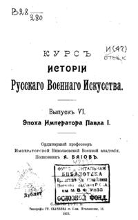 Курс истории русского военного искусства. Выпуск VI. Эпоха Императора Павла I.