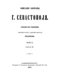 Полный обзор средств воюющих держав, полуострова Крыма, в особенности театра военных действий, изложенный по дням ход обороны и атаки, действия противников, а также распоряжения относительно убыли и усиления крымской армии, продовольствия войск и попечения больных и раненных, планы и чертежи.