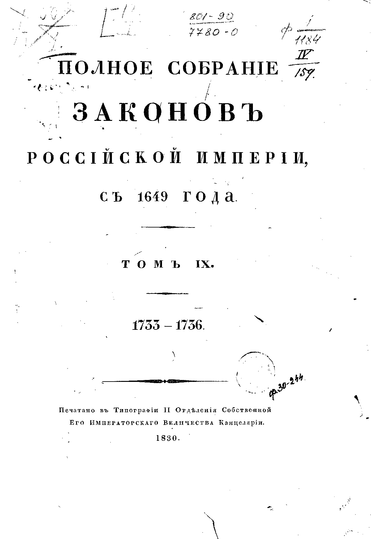 Полное собрание законов Российской Империи. Собрание Первое. Том IX