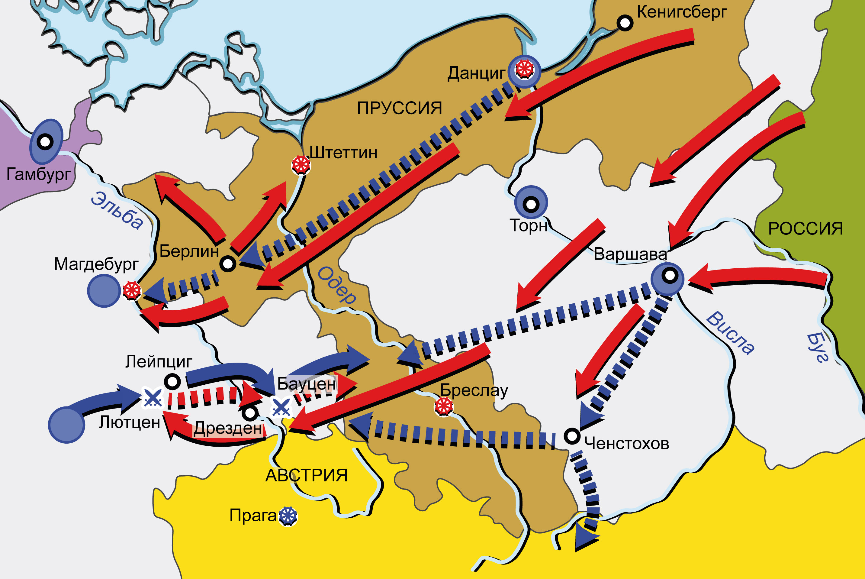 Шестая антифранцузская коалиция 1812–1814 гг. Карта кампании в Германии в 1813 г. до заключения перемирия