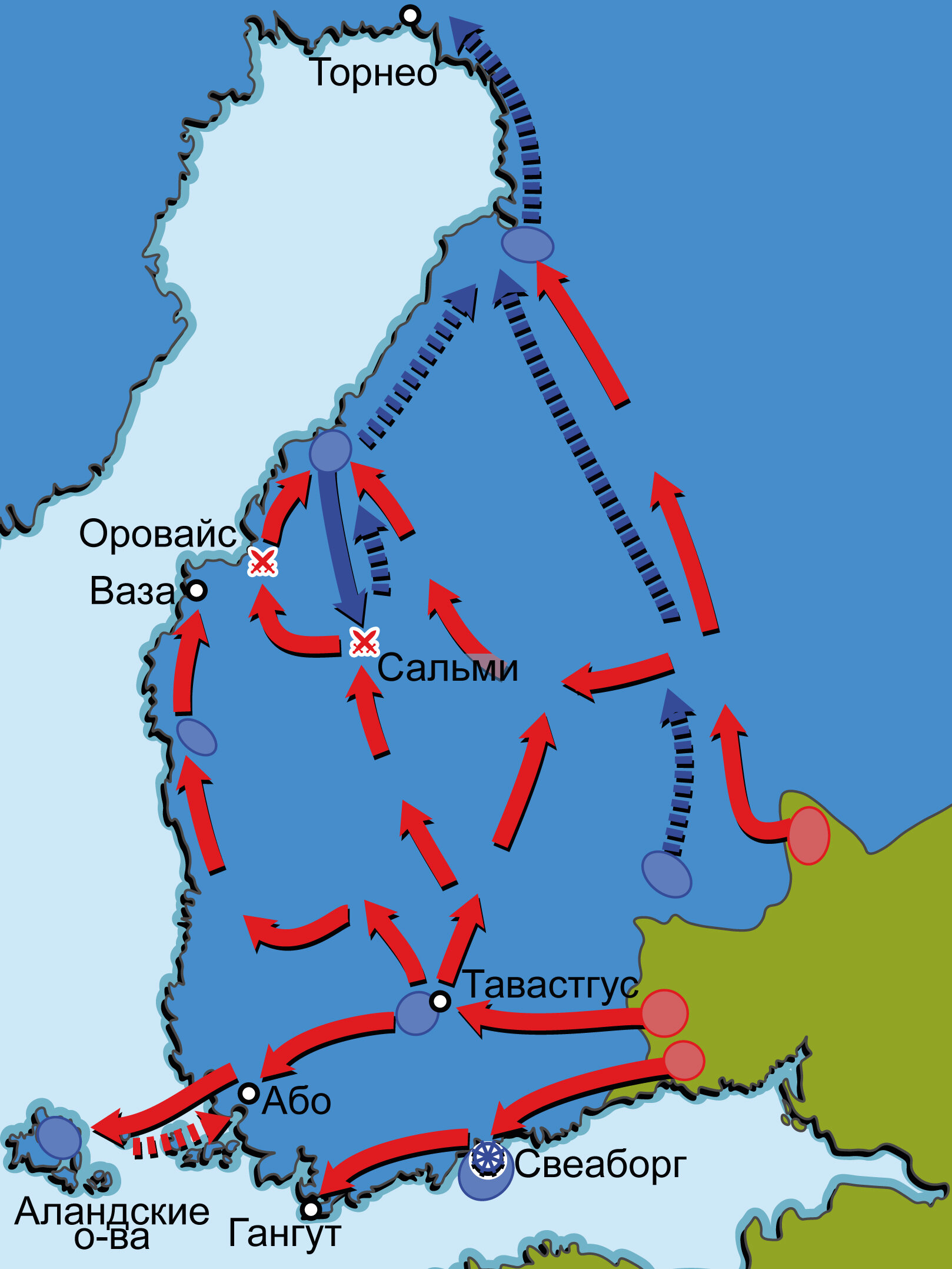 Русско-шведская война 1808-1809 гг. Карта кампаний 1808 г. в Финляндии и на Балтийском море
