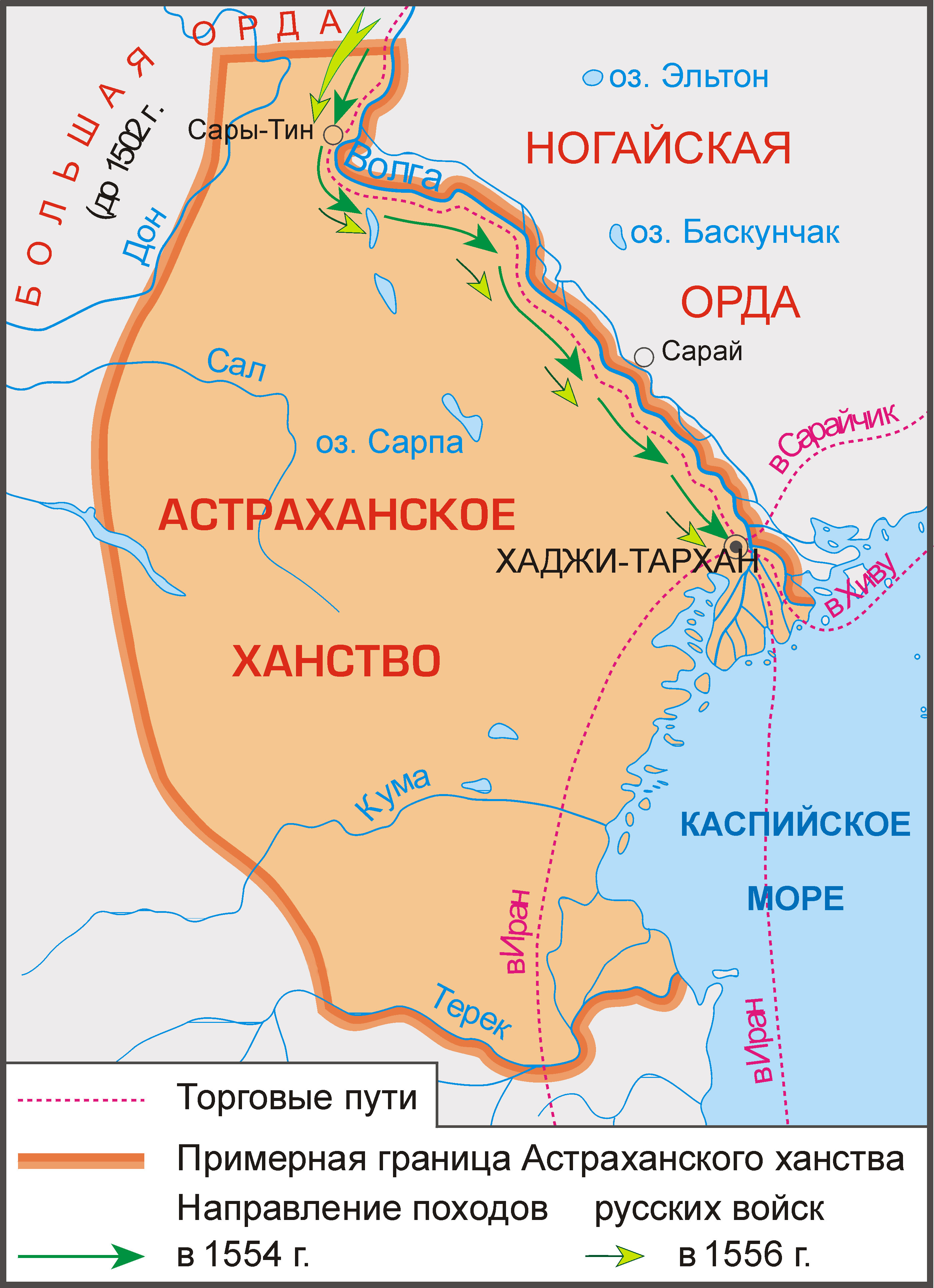 Присоединение Астраханского ханства в 1556 г. стало важным этапом политики Ивана IV, завершившим ликвидацию независимых ханств на Волге. Этот акт обеспечил контроль Москвы над нижним Поволжьем, укрепил позиции России в противостоянии с Крымом и Османами и открыл путь к Каспию и Востоку.