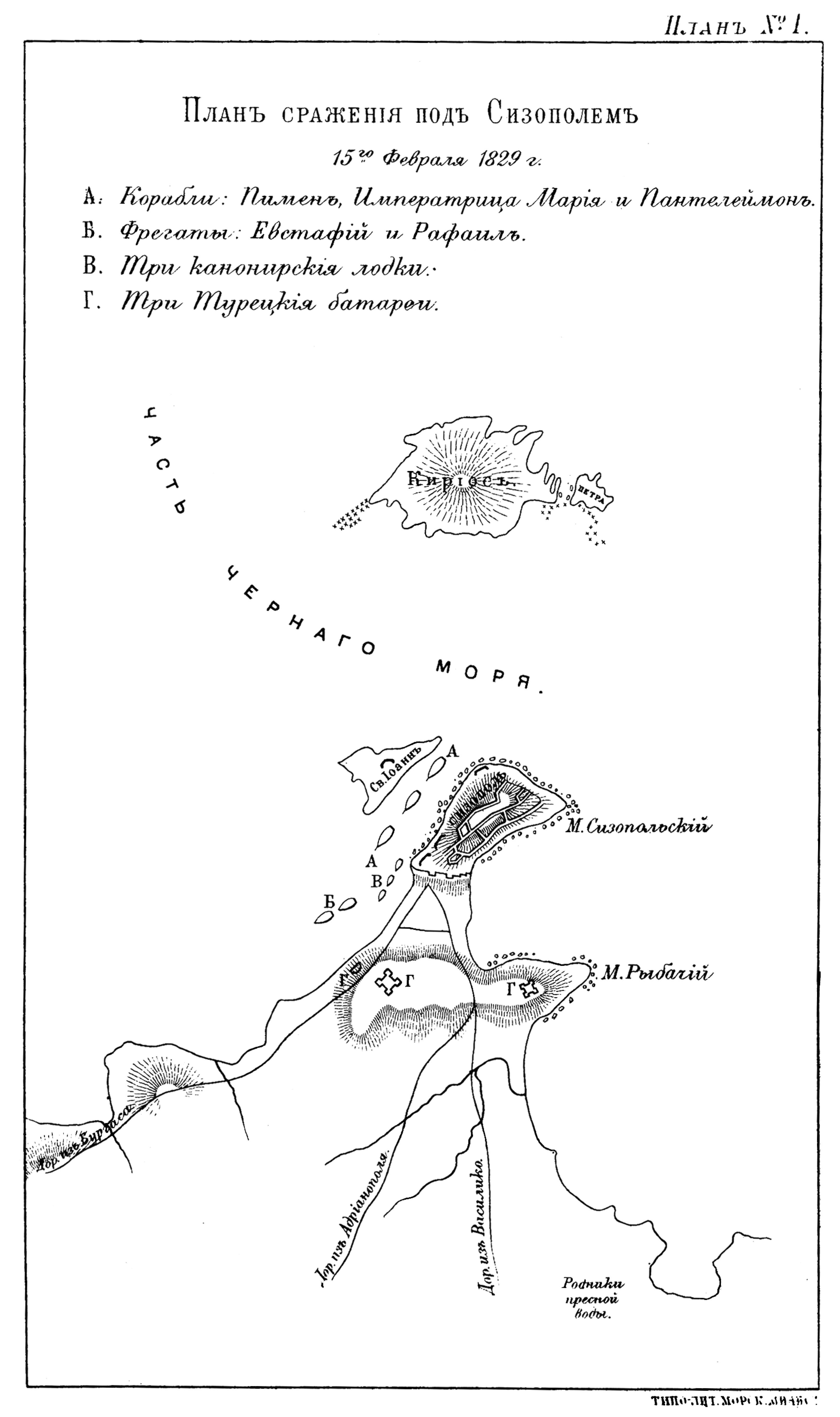 План сражения под Сизополем 15 февраля 1829 года