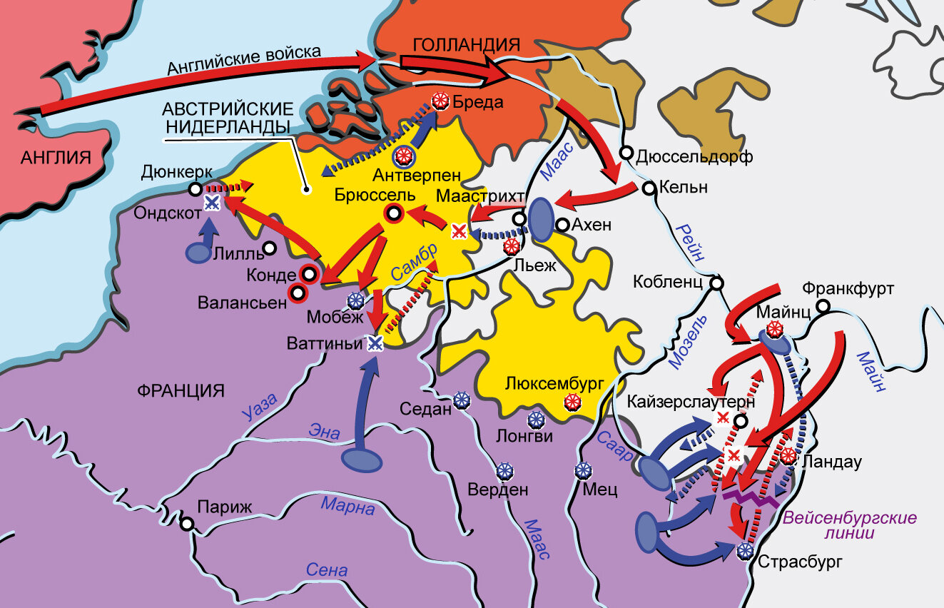 Первая антифранцузская коалиция 1792–1795 гг. Карта кампаний в Бельгии и на Рейне в 1793 г.