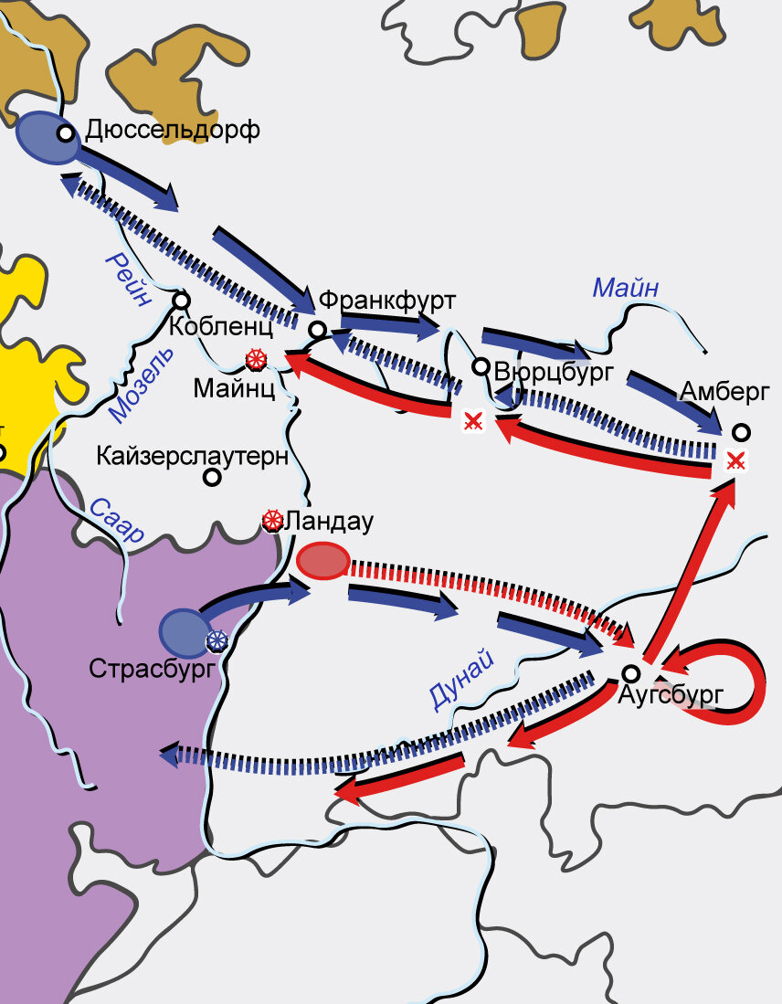 Первая антифранцузская коалиция 1792–1795 гг. Карта кампаний 1796 г. на Рейне