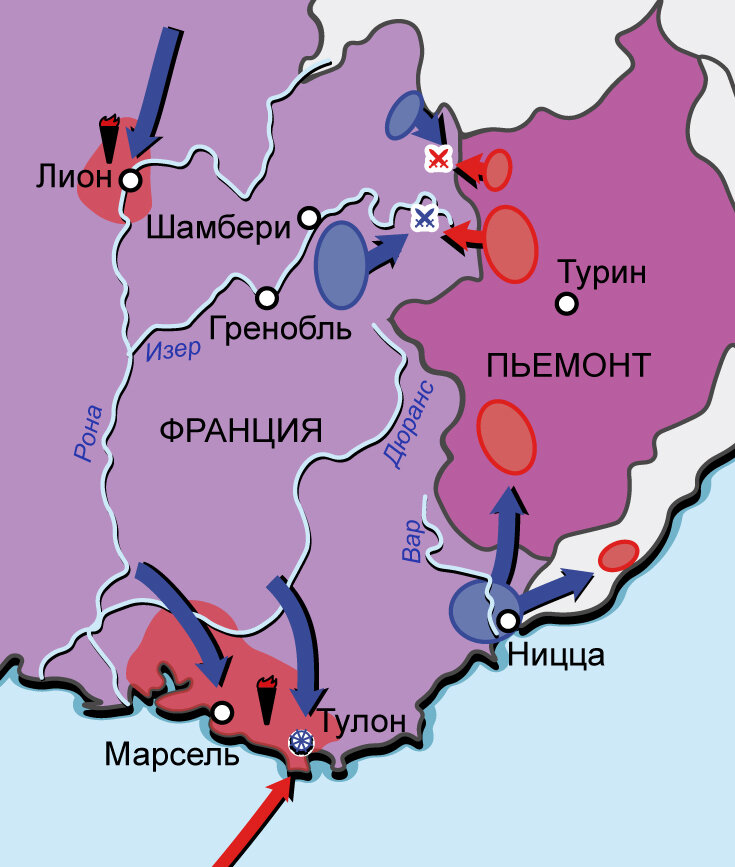 Первая антифранцузская коалиция 1792–1795 гг. Карта кампании в Альпах и восстания во Франции в 1793 г.
