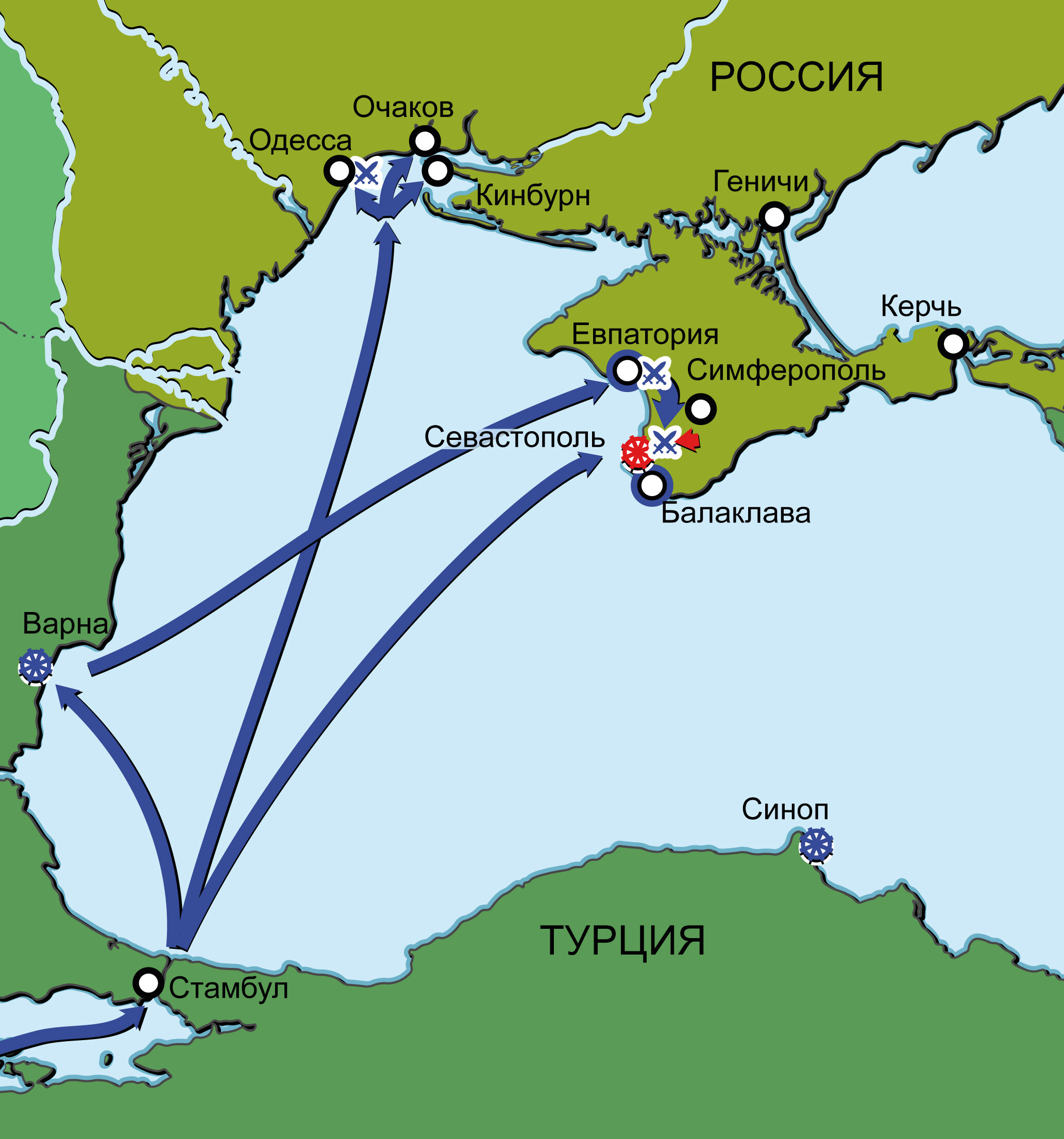 Крымская война 1853–1856 гг. Карта кампании 1854 г. в Крыму и на Черном море