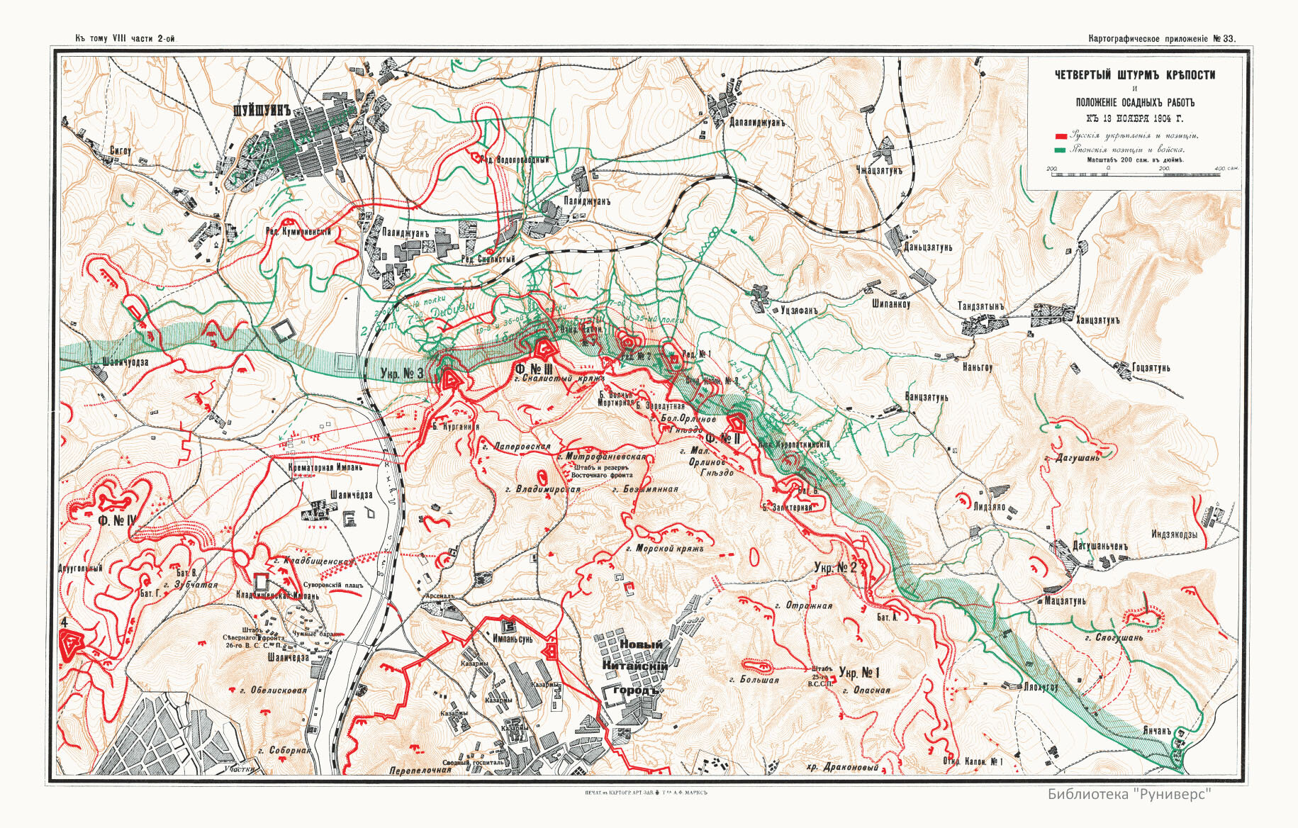 Карта: Четвертый штурм крепости и положение осадных работ к 13 ноября 1904 г.